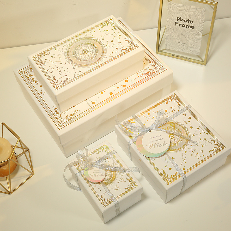 Elevate your gift-giving with our elegant customized gift boxes, featuring secure lids and exquisite gold-stamped patterns. Perfect for anniversaries and birthdays, these premium packaging solutions add a touch of sophistication and personalization to your special presents. Designed to impress, each box ensures your gift is as memorable as the occasion itself. Ideal for creating unforgettable unboxing moments.